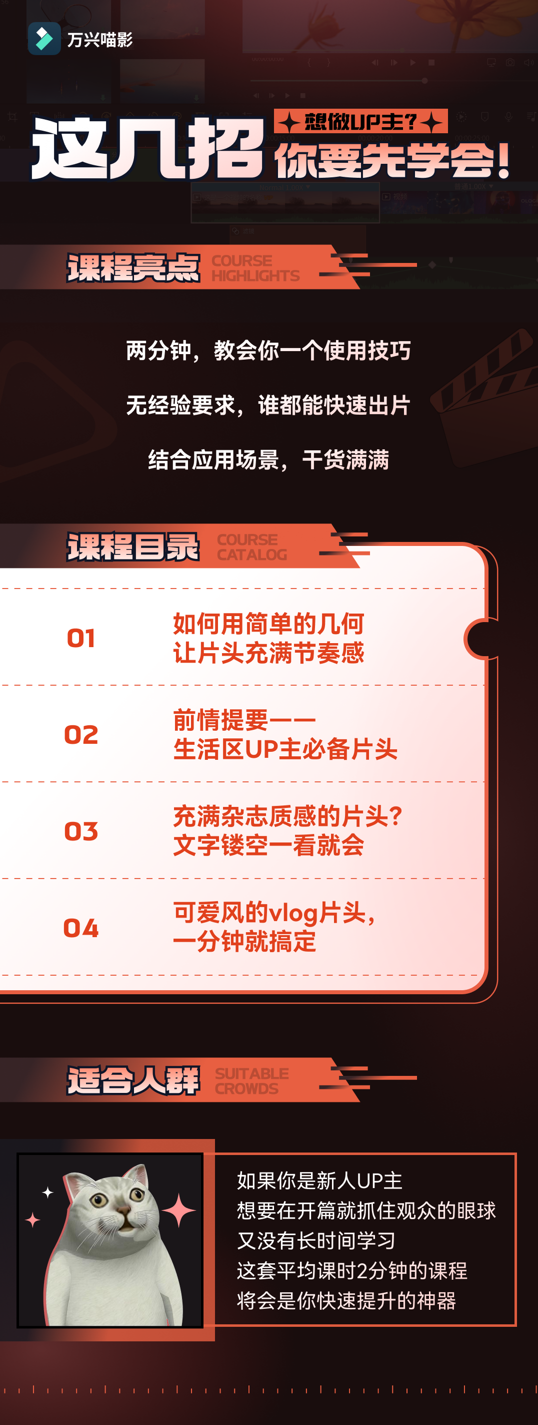 提供人门到精通的全方位视频剪辑课程满足各类场景的创作需求