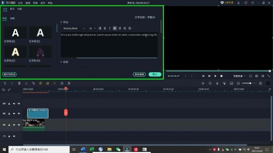 第二步:点击“文字”版块,导入字幕模块并设置需要展示的字幕条内容,介绍这种事物的历史、故事等相关资料。