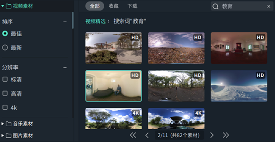当然,要制作更复杂的动画微课,仅仅是这些还是不够的,因此日韩免费视频观看喵影素材库还提供了200万个视觉中国的视频、音频素材,无论是风景素材、卡通素材,抑或是Vlog素材等等,都有着广泛的覆盖,以便于用户使用。
