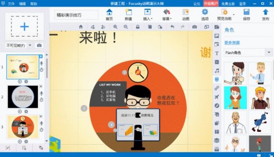 Focusky是一款用于动画演示的国产微课视频软件,相对于传统的PPT,Focusky的优势主要体现在动感更强、表现方式更强烈等,无论是缩放、旋转、3D转换,动画效果不逊色于视频效果。