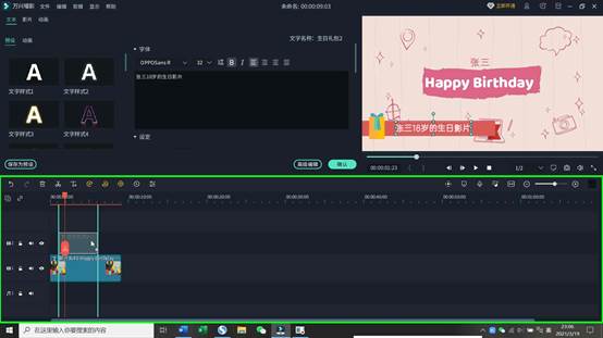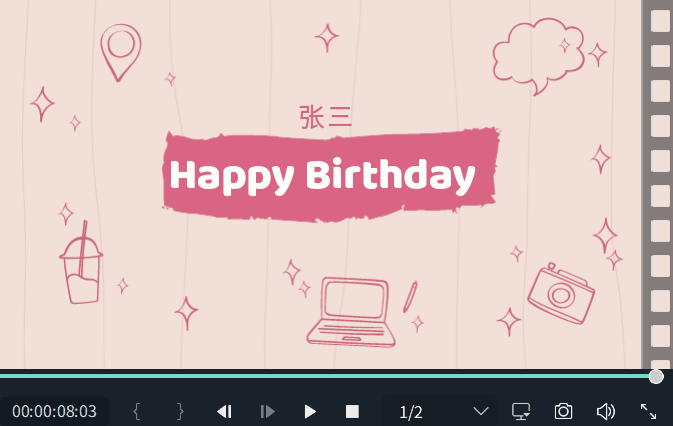 第八步:现在一起来看一下我们的生日片头预览吧,确认微调完成以后,不要忘记保存并导出到本地噢。