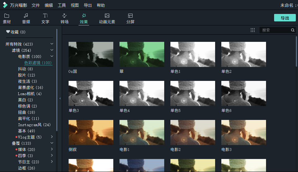 有时候一个视频只用一种滤镜就足够了,但大多时候一个视频只用一种滤镜就显得有点单一了。根据视频的主题以及你想要呈现的效果来叠加不同的滤镜,可以使你的视频更具个性化。叠加不同的滤镜只需要再从滤镜素材面板上再拖拽一个滤镜到时间轴上,然后根据视频需求调整时长和透明度就完成了。