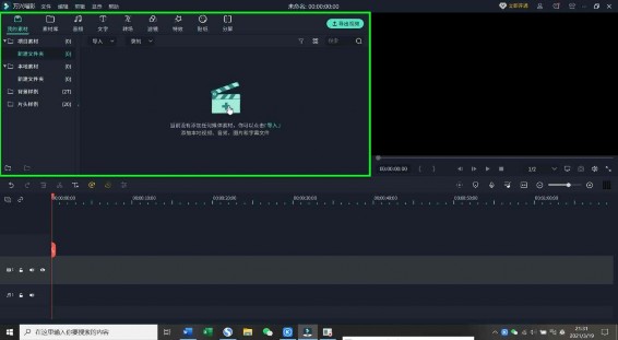 1、首先点击“添加素材”导入我们的视频素材文件,下一步再点击“+”号使其加载到编辑轨道上,以便进行后续操作。