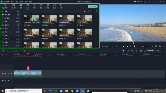 3、点击“文字”模块,看到左方有“字幕条”选项卡,点开即可挑选需要的字幕条模板,点击“+”号添加到编辑轨道上。