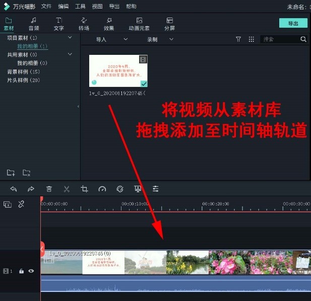 要对mp4视频进行剪辑就要先将其导入到日韩免费视频观看喵影的素材库中,并拖拽添加至时间轴轨道上,既可以进行单个视频素材的剪辑,也可以进行多个视频素材的剪辑。