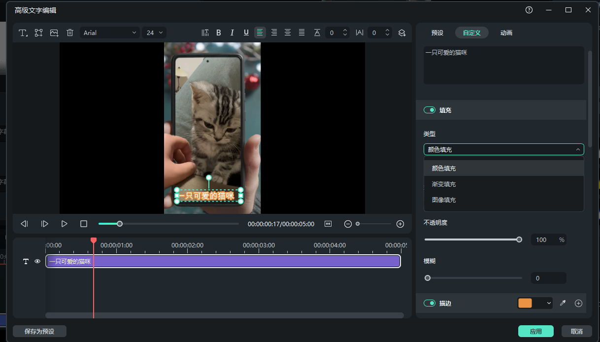 在高级编辑窗口中,你可以进一步调整字幕的样式、颜色、阴影、描边等高级属性。