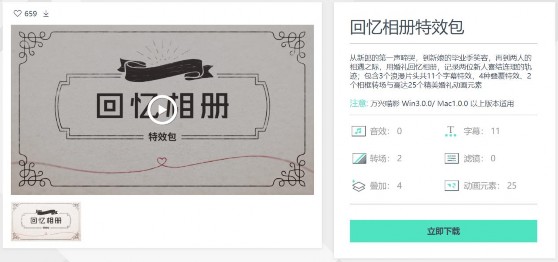 进入日韩免费视频观看喵影官网,进入特效中心,搜索回忆,即可找到官方素材包(这是用于相册的)