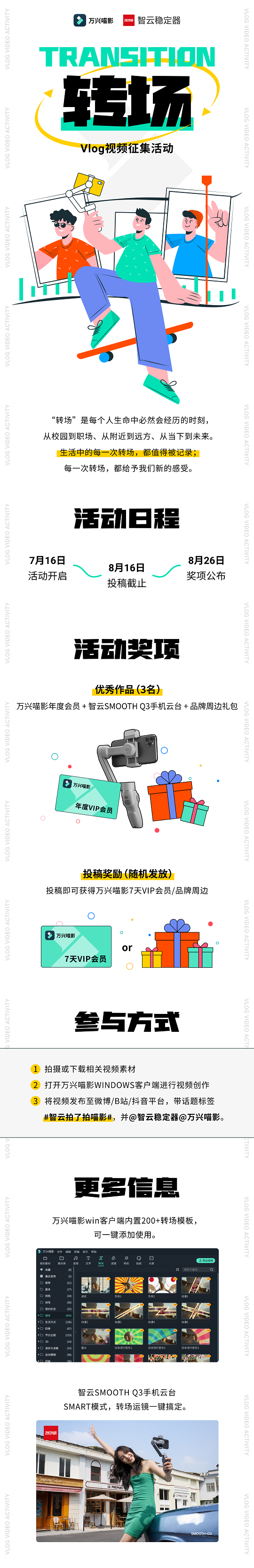 只要是你觉得有意义的“转场”时刻,用视频的形式记录下来,就可以来参加日韩免费视频观看喵影X智云【转场】Vlog视频征集活动!