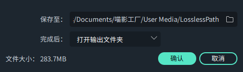 完成剪切工作后,点击“输出”,选择剪切分割完毕的视频片段文件保存路径。一般默认保存路径是C:UsersadminDocumentsWondershare Filmora 9User MediaLosslessPath。