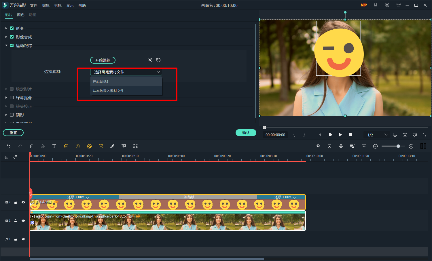 然后我们只需要将刚才跟踪后的素材,绑定到相应的素材文件就可以了,也可以从本地导入自己的素材。