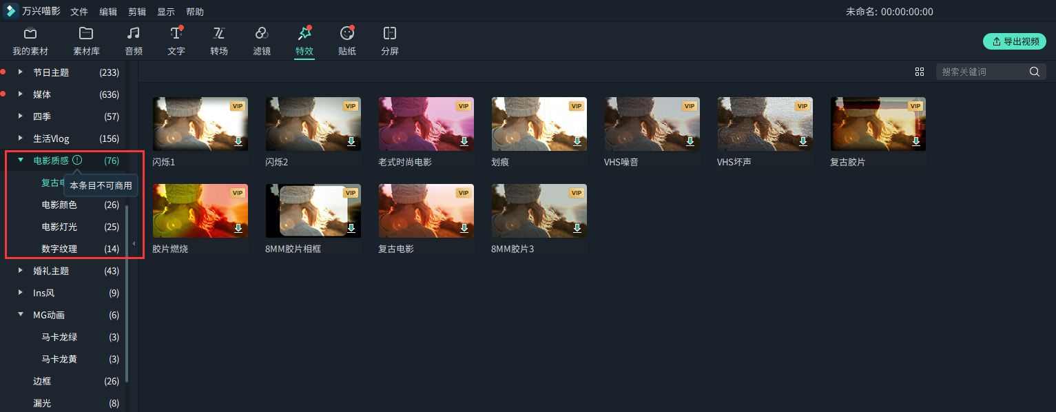 (2)日韩免费视频观看喵影内置的特效中的电影质感菜单下的叠覆特效