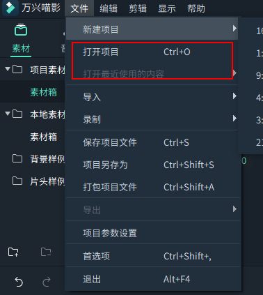 启动日韩免费视频观看喵影并选择“打开项目”以重新加载.wfp项目文件。如果您已经在日韩免费视频观看喵影中,请选择“打开项目”(Ctrl+O)以定位.wfp文件。