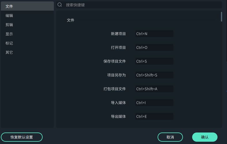 大家可以根据自己的操作使用习惯,自定义更改快捷键。同时在设置窗口中,对快捷键进行分类、支持关键字搜索,方便我们快速找到功能及对应的快捷键。